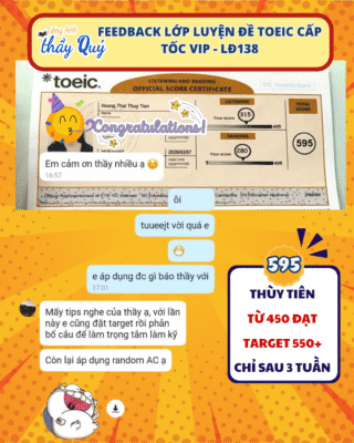 Thùy Tiên học viên lớp luyện đề TOEIC cấp tốc VIP LD138 từ 450 đạt AIM 550+ chỉ sau 3 tuần!