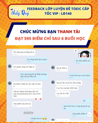 Thanh Tài học viên lớp luyện đề TOEIC cấp tốc VIP LD140 đạt 595 điểm chỉ sau 6 buổi học!