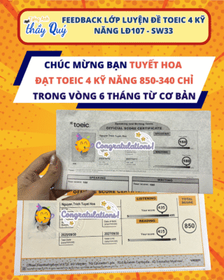 Chúc mừng bạn Tuyết Hoa đã xuất sắc đạt TOEIC 4 kỹ năng 850 – [...]