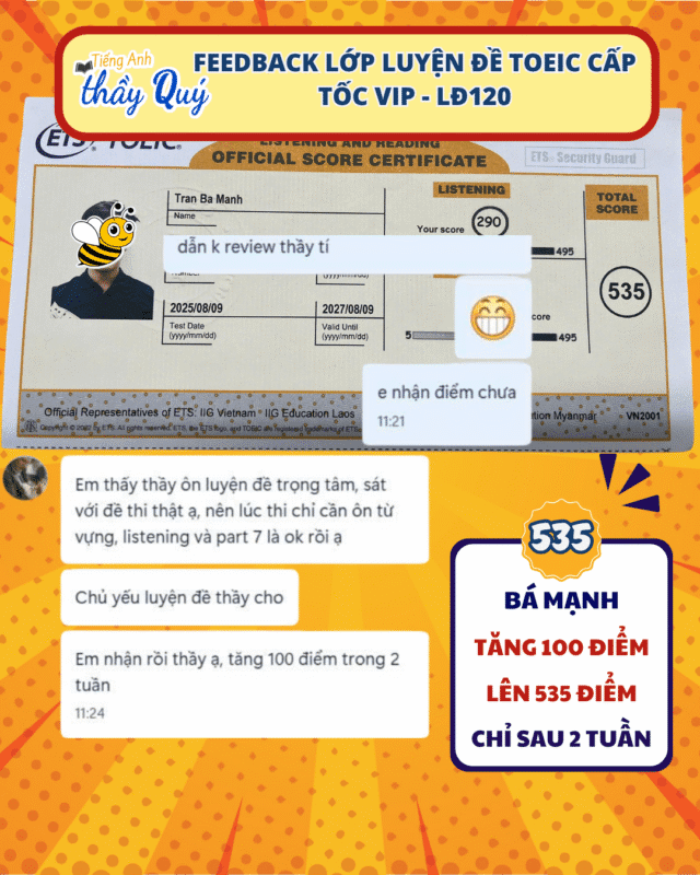 FEEDBACK HỌC VIÊN – LỚP LUYỆN ĐỀ TOEIC CẤP TỐC – LĐ120