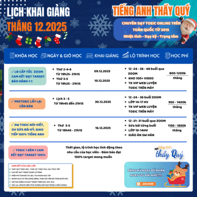 Trong tháng 12/2025 này Tiếng Anh Thầy Quý khai giảng các khóa TOEIC ONLINE từ [...]