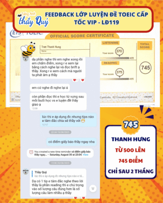 FEEDBACK LỚP LUYỆN ĐỀ TOEIC CẤP TỐC VIP – LĐ115 Trúc Linh – Tăng từ 530 645 [...]