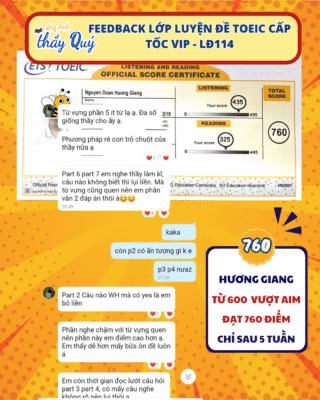 Hương Giang lớp luyện đề TOEIC cấp tốc VIP LD114 tăng từ 600 lên 760 điểm chỉ sau 5 tuần