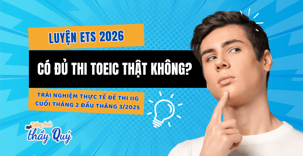 Dành cho các bạn nào đang có ý định luyện thi hay học TOEIC online cấp tốc cho kỳ thi sắp tới, hiện Tiếng Anh Thầy Quý đang có mở một luyện thi hoàn toàn miễn phí. Chương trình cộng đồng do group GIẢI ĐỀ TOEIC CẤP TỐC 2026 và Giải đề ETS 2026 đồng tổ chức và tài trợ. Chương trình gồm 16 buổi luyện đề ETS cho các thành viên mới của nhóm, với mục đích nhằm hỗ trợ các bạn MỚI ÔN TOEIC và SẮP THI làm quen với cấu trúc đề, ôn luyện lại cách thức làm bài, bí quyết luyện thi được tích lũy từ kinh nghiệm của các thầy cô hay anh chị đi trước. Xem thêm thông tin chi tiết các khóa học bên dưới nhé.