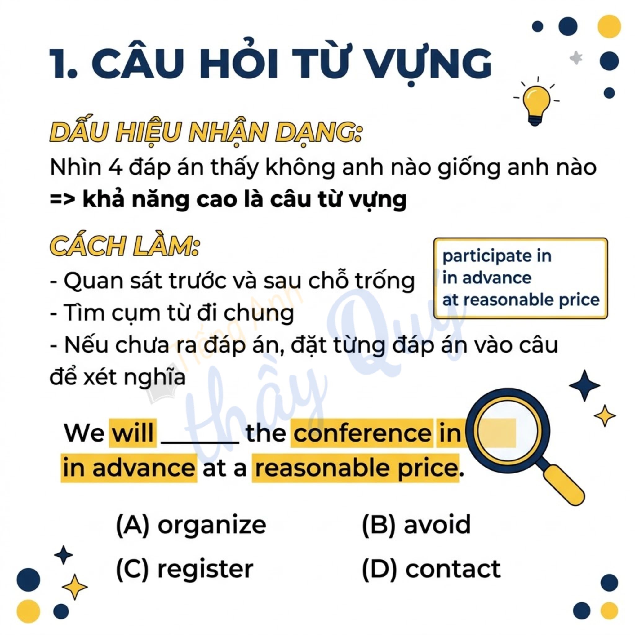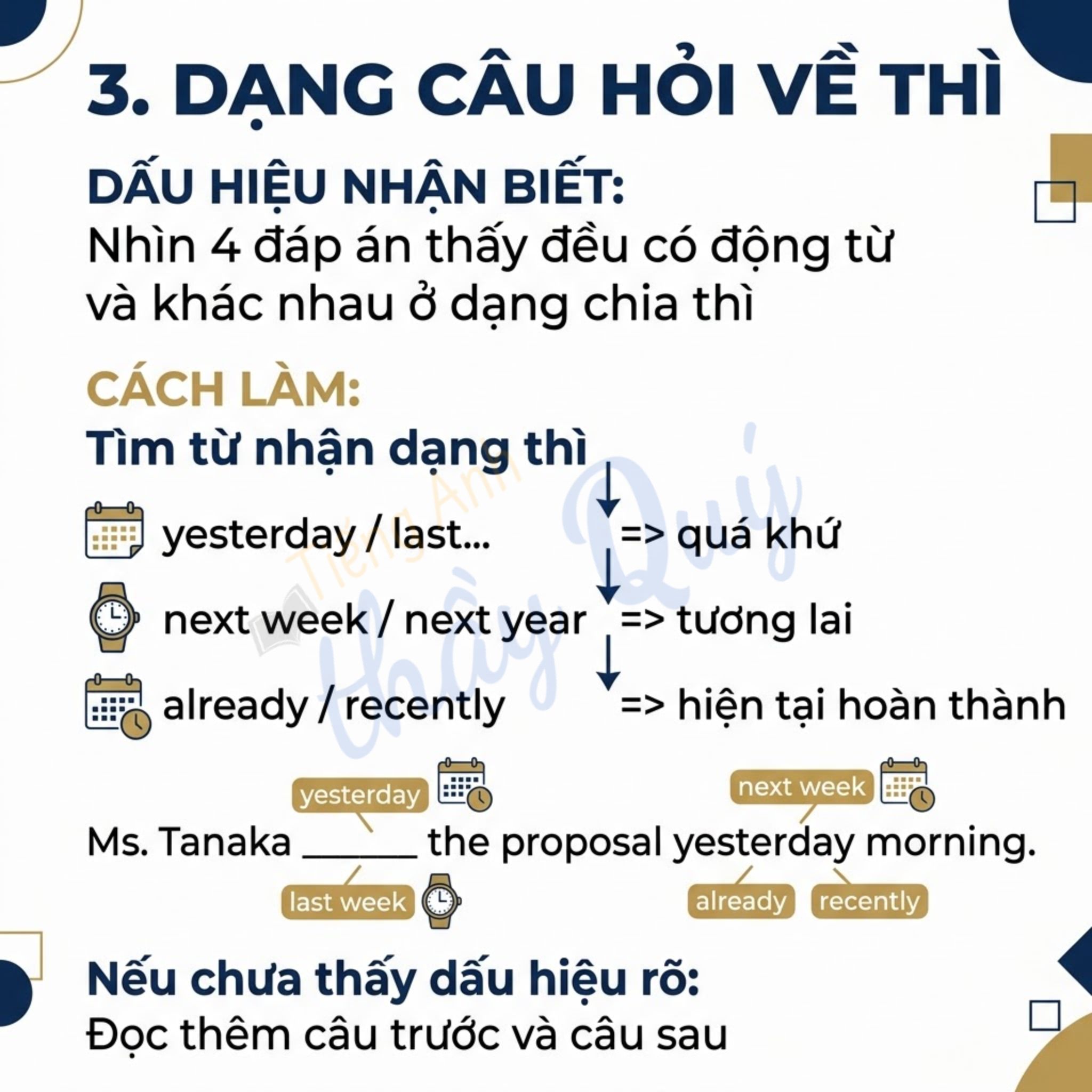 Việc nhận diện đúng dạng câu hỏi có thể giúp tiết kiệm đáng kể thời gian làm bài.