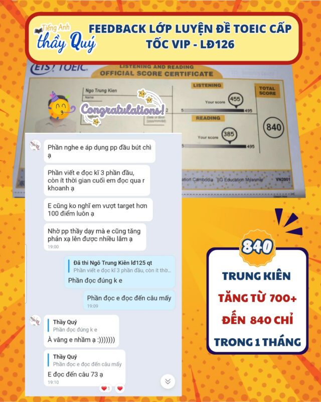 Chúc mừng bạn Trung Kiên đã xuất sắc nâng điểm từ 700+ lên 840 chỉ trong 1 tháng!