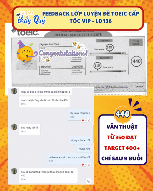 🔥 CHÚC MỪNG HỌC VIÊN VĂN THUẬT 👉 TỪ 350 → ĐẠT 440 TOEIC